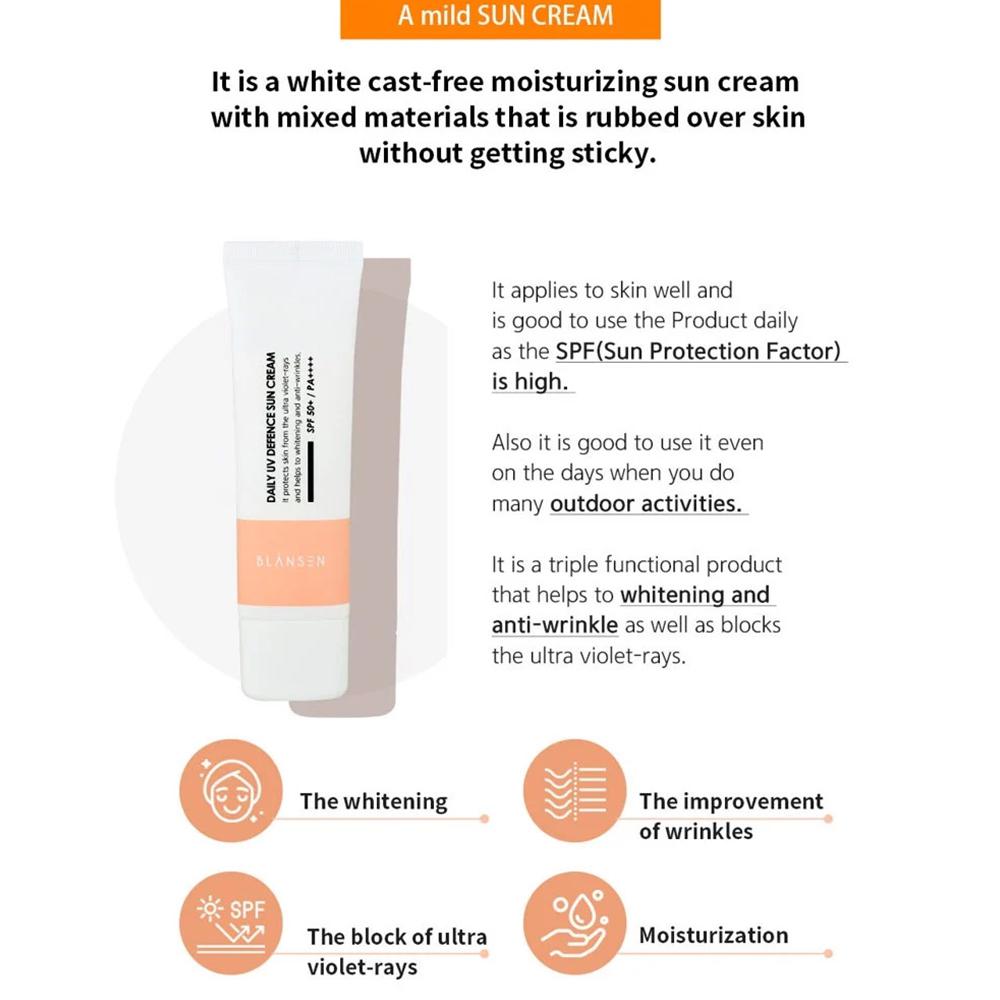 I. Tên sản phẩm: Kem chống nắng Daily UV Defence Sun (SPF50+/PA++++) 50ml Hàn Quốc Blansen