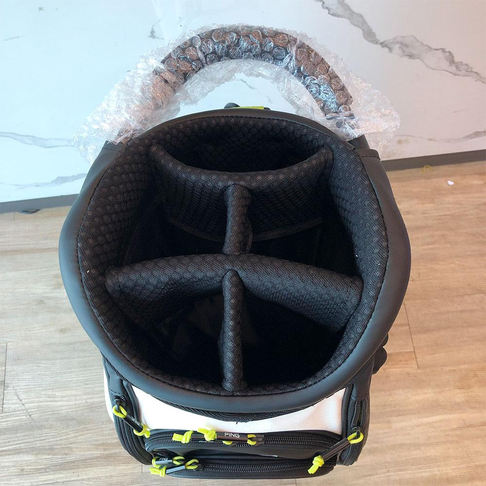 Túi golf Ping còn gây ấn tượng bởi các đường may chi tiết, tỉ mỉ, chắc chắn đi kèm khóa kéo linh hoạt và phần khoang rộng được may đệm bảo quản gậy êm ái, chắc chắn.